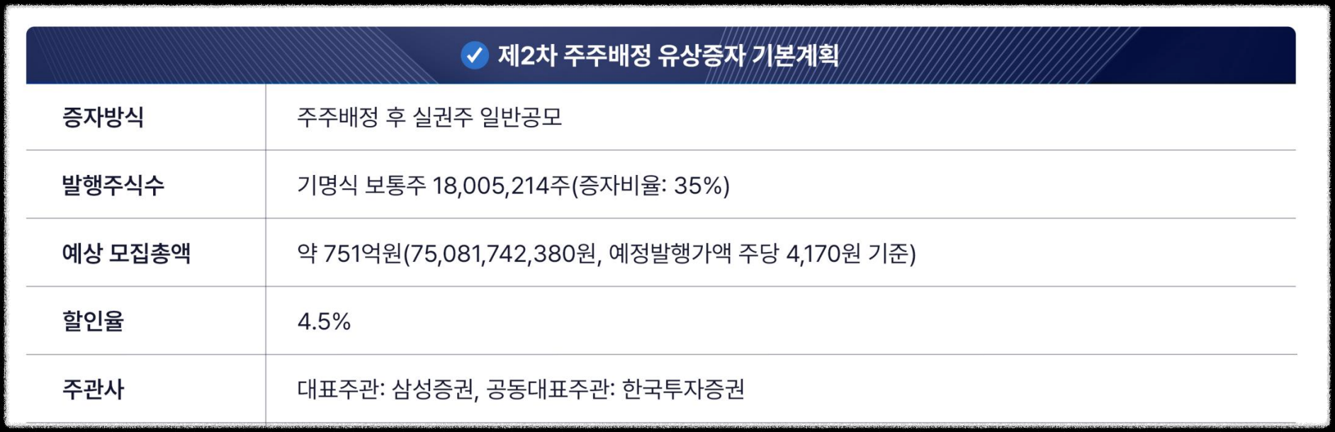 유상증자의 주요 내용은 다음과 같습니다: