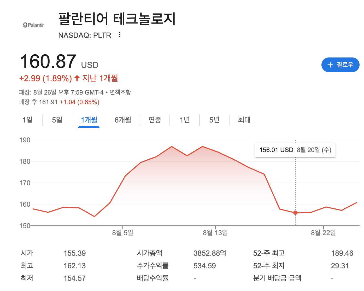 최근 8월에 팔란티어가 급 하락했죠. 보유하고 계신분들은 불안할 수 있는 포인트였는데요,, 앞으로 보유해도 될지 매수해도 좋을 타이밍인지 알아보겠습니다.